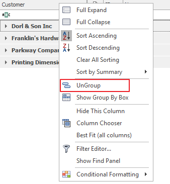 - To return the data to its original form, right-click the column you used to group and select Cancel Grouping .