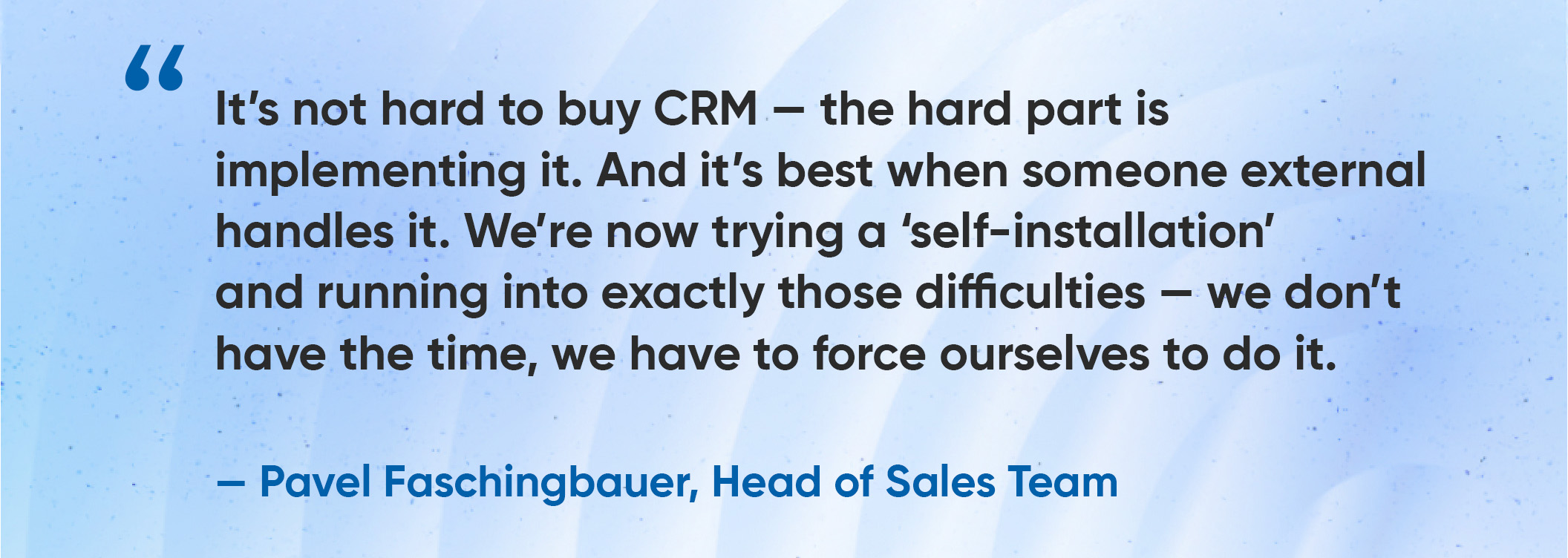This is an important general lesson for any CRM project: simply installing the system is not enough. It requires implementation work, process adaptation, and ongoing mentoring — ideally from someone who understands the customer’s daily reality while knowing the product well enough to tailor it properly.